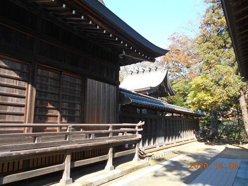 拝殿の右手から奥の本殿へ向かいます。 瑞垣の向こうの本殿には彫刻が見えます。見えますが瑞垣に遮られて全体が見えません。 なんとか隙間から撮影。ヘリがフリルみたいになっていて、ちょっと可愛い釜。 郭巨の足元には鍬もあります。 パッと一回で全体が…