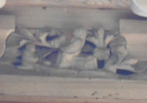 こちらもタイトル不明。何でしょう、このお二人は。右側の人は椅子に座って空を見上げています。左側で正座しているのは子供?耳が大きくてお猿さんにも見える。二人の間にはお供えものか何かの器らしきもの。 右の人物の右手は破損しているのかな・・・本来…