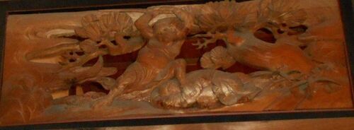 これは難しかったです。「張孝兄弟」です。 棒を振り回している半裸の男性と、踏みつけられている人。この二人が張孝兄弟ではありません。乱暴な人は追いはぎで、踏まれているのが張孝兄弟の弟、張礼です。 おそらくこの挿絵を参考にしていると思われます。 …