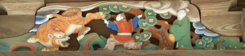 二番目は楊香。 恐ろしい虎にも怯まず父を守る楊香。 我関せずのお父さん。