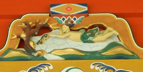ラストは郭巨の右側の彫刻。大舜です。 象と仲良く畑仕事。 優しそうな象ですねー。 鳥は大舜の後ろにいました。 ーーー 志摩国分寺の二十四孝彫刻 終 ーーー