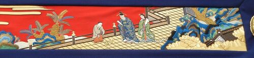 大津祭郭巨山の二十四孝は今日で最後になります。大舜の右側には陸績。 おじさんに注意される少年。 少年の足元に転がるミカン。 陸績は袁術さんちにお邪魔したとき、出されたミカンを黙って袖に入れて持ち帰ろうとしました。お別れの挨拶をした拍子に袖から…