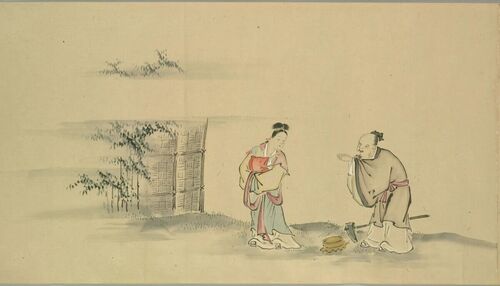 貧しさのあまり我が子を埋めようと穴を掘っていたら黄金の釜が出てきて喜ぶ郭巨夫婦。郭巨は幼い我が子よりも、年老いた自分の母親を守ろうとしていました。 さっそく買取業者に査定してもらいましょうねー。 着物も色あせてきたから新しいのを一枚欲しいわ…